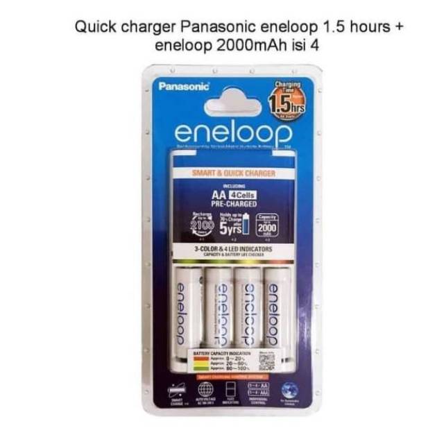 Panasonic Smart & Quick Charger A2 4pcs Eneloop Battery AA A3 1900 2000 mAh 1.5 jam BQ CC55