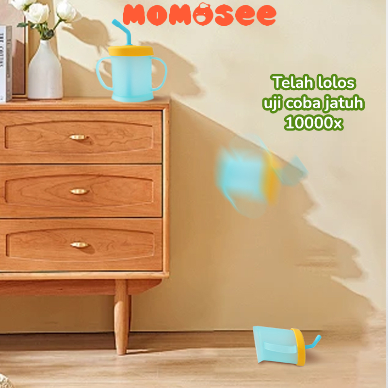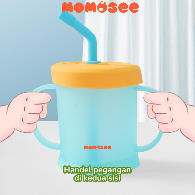 Momosee Gelas Minum Sedotan Anak Curve Straw Cup Gelas Susu Anak Anti Tumpah dan Pecah BB28