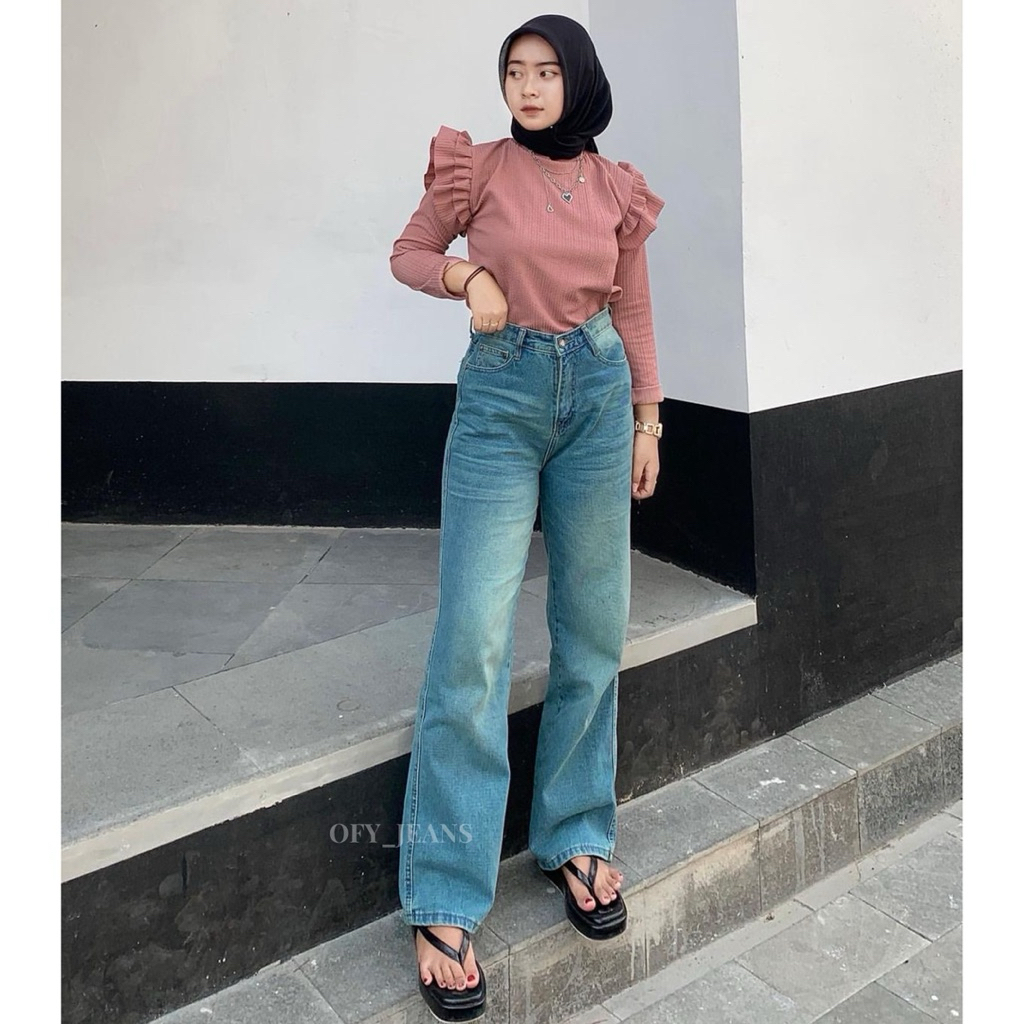Highwaist Cutbray Jeans Retro 114 - Celana Jeans Cutbray Premium