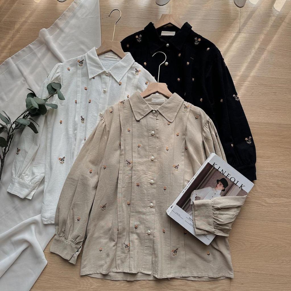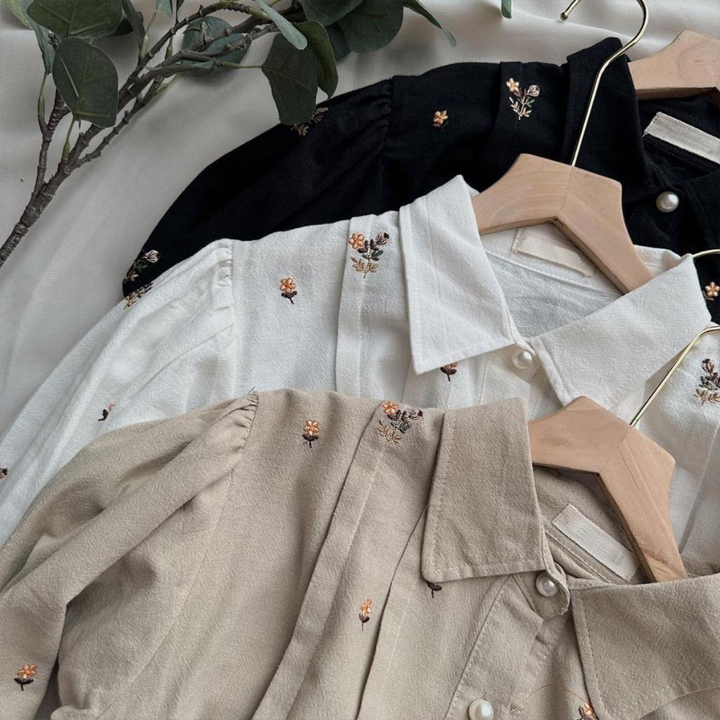 Busana Baju Muslim | Baerina Top | Atasan Kemeja Remaja Wanita Linen | Kemeja Bordir Coquette