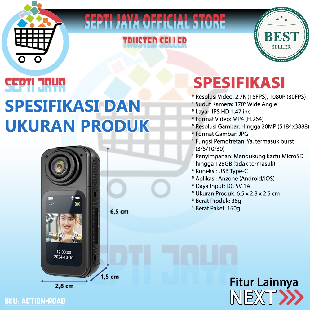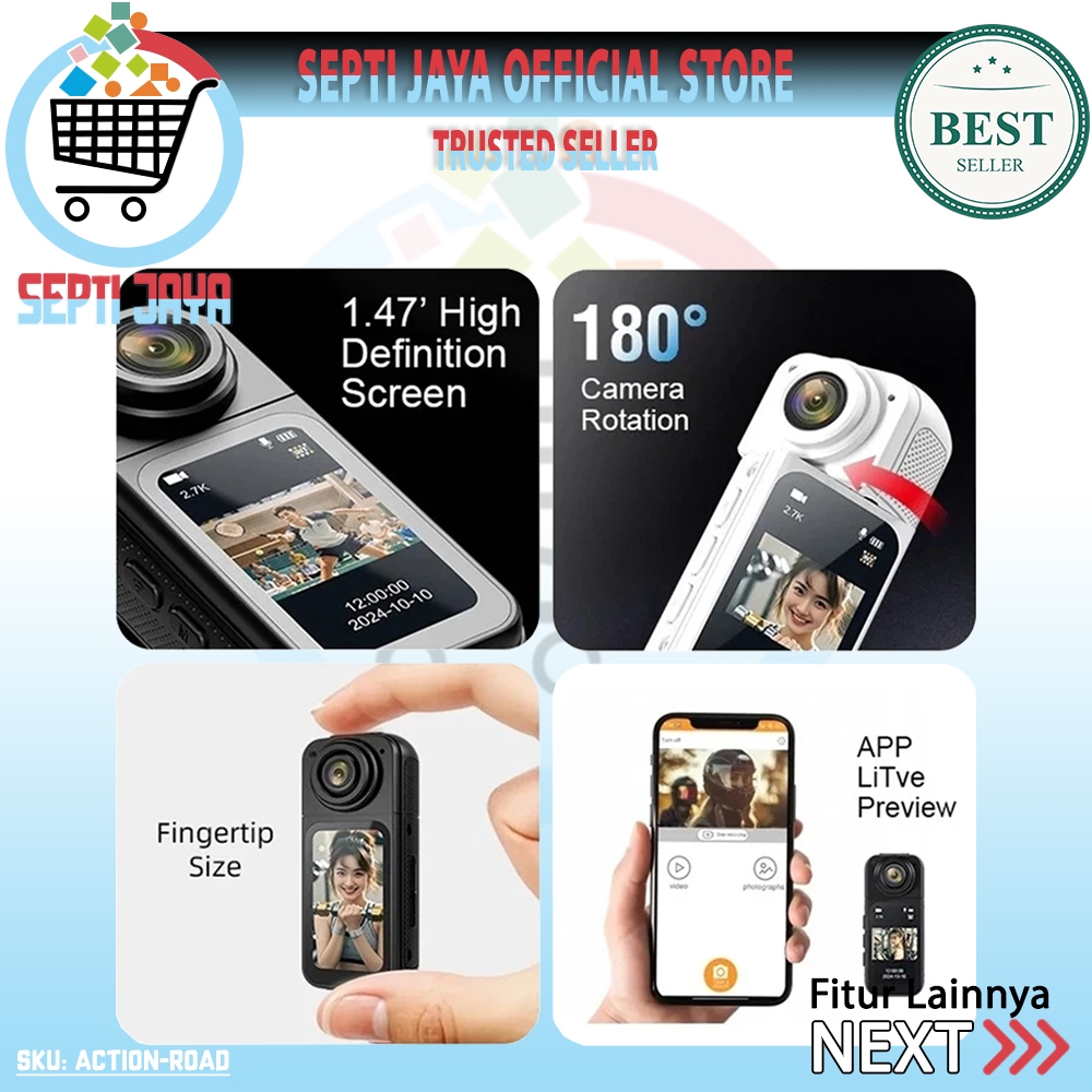 Septijaya Mini Action Kamera Wifi 2.7K UHD 12MP 180° Rotasi Magnetik ACTION-ROAD Spy Camera Roadcam
