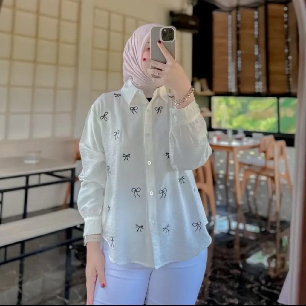Blouse Wanita motif Bordir Pita / Kemeja Wanita PURE linen / Atasan Blouse Bordir Korean Style
