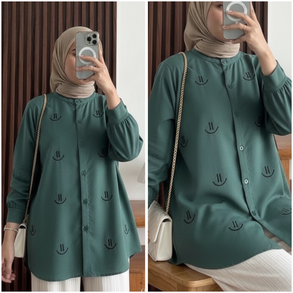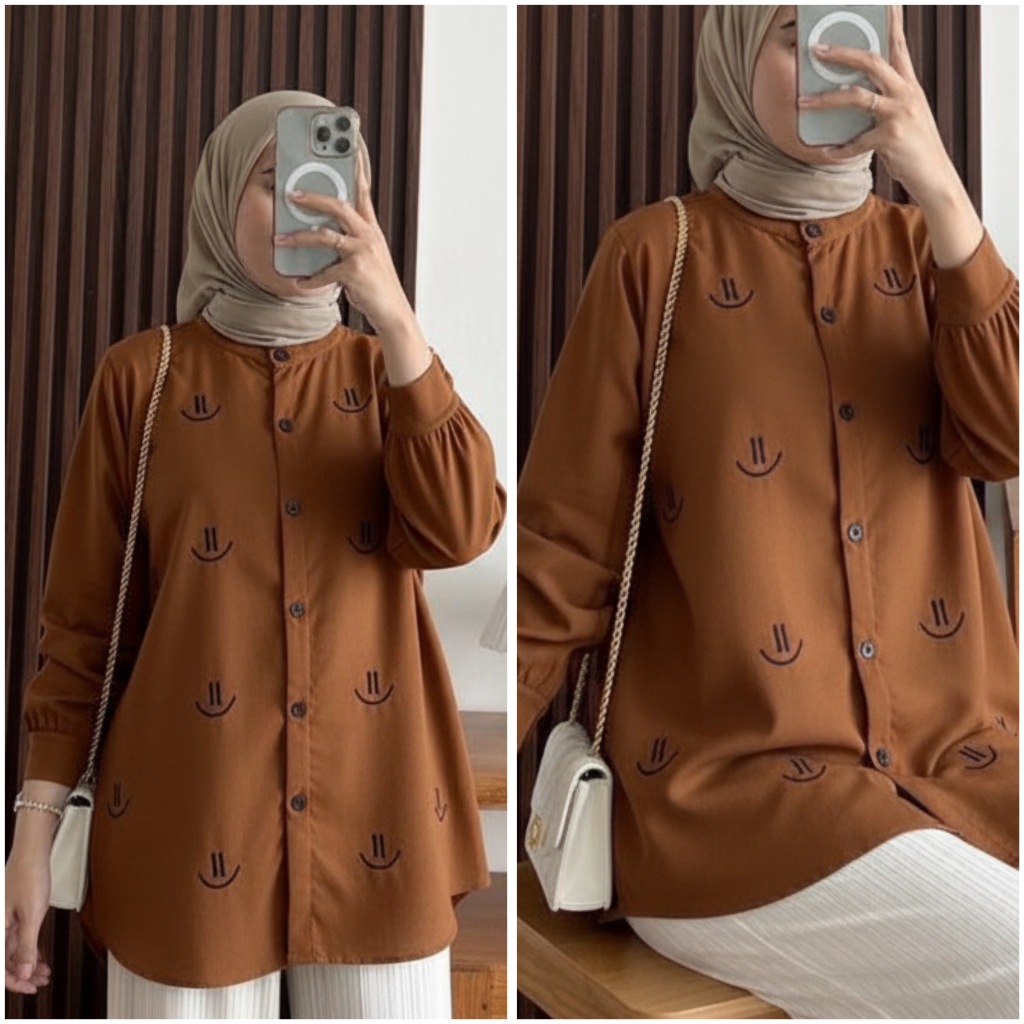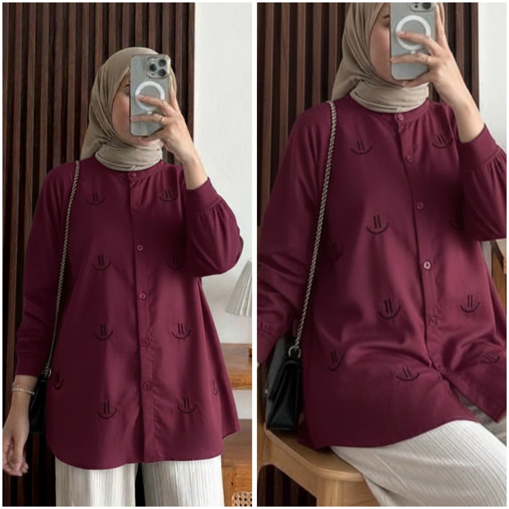 Shaina Blouse Kemeja Wanita Bordir Smile Rayon Twill Premium Atasan Kekinian
