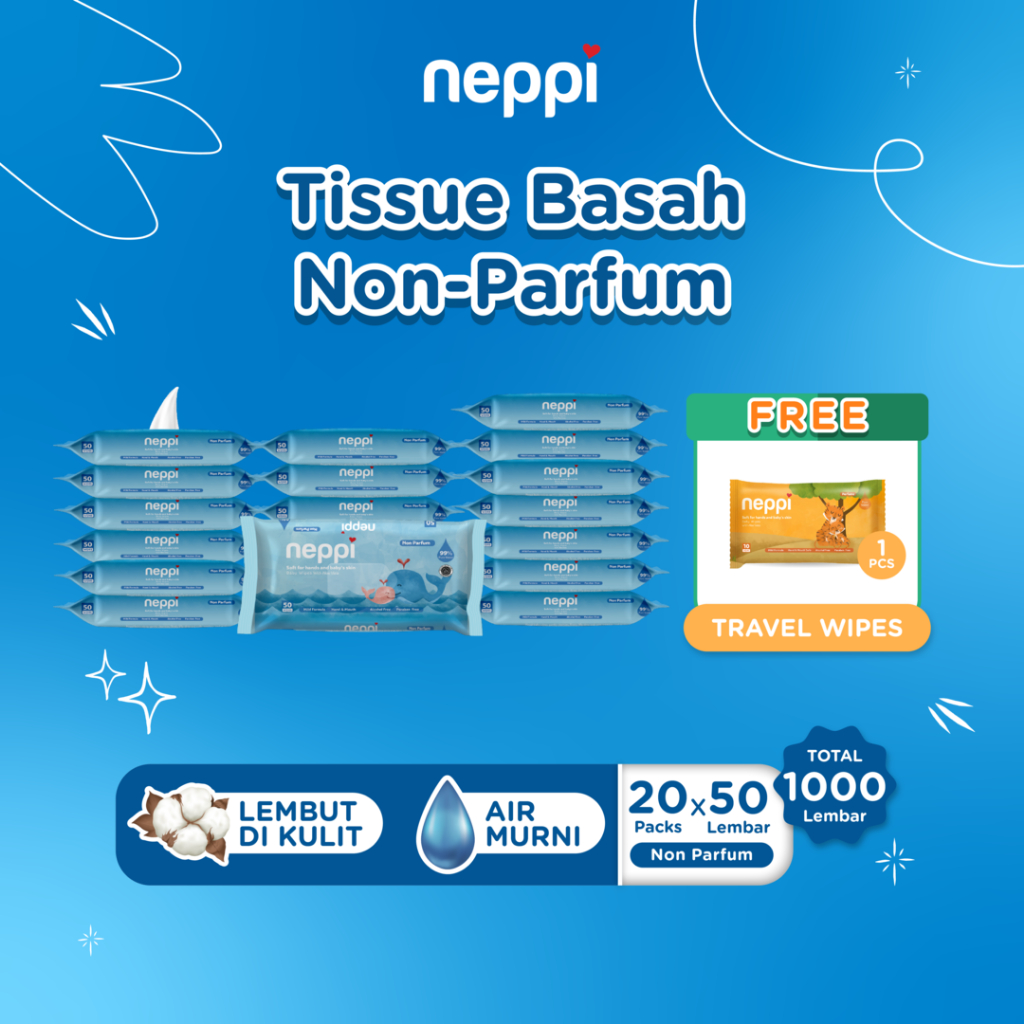 (20 Pcs x 50 Lembar) Neppi Baby Tisu / Tissue Basah Wipes Non Parfum