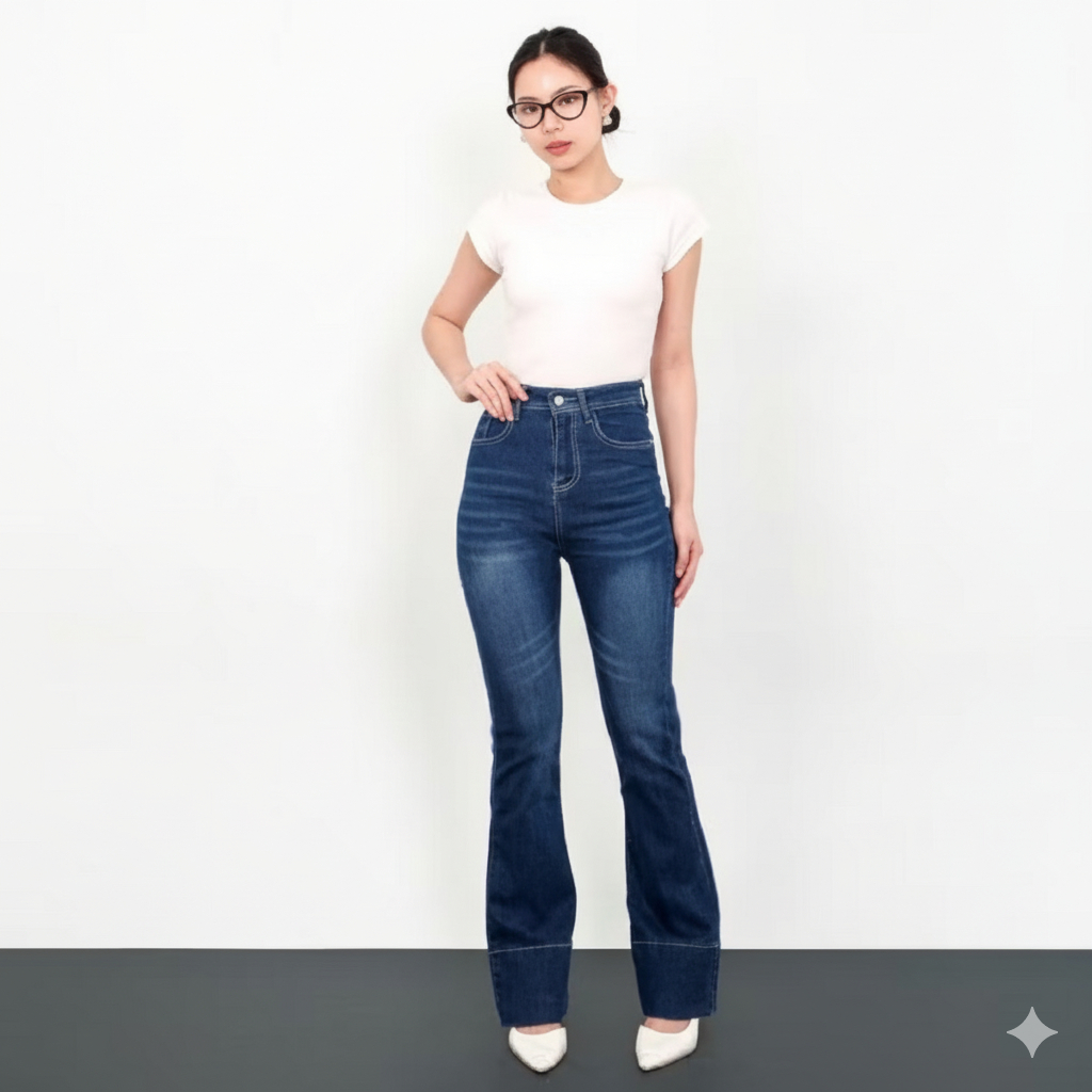 Celana Jeans Cutbray Highwaist Stretch Wanita Loose Kekinian Retro Korea Lipat Bawah