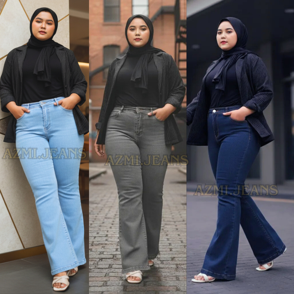 Celana Jeans Wanita Cutbray Jumbo Big Size Highwaist Loose Premium Stretch Kekinian Muat BB 100Kg