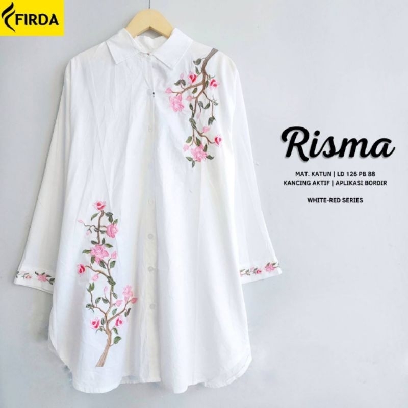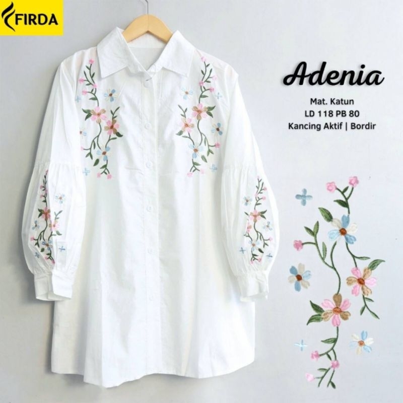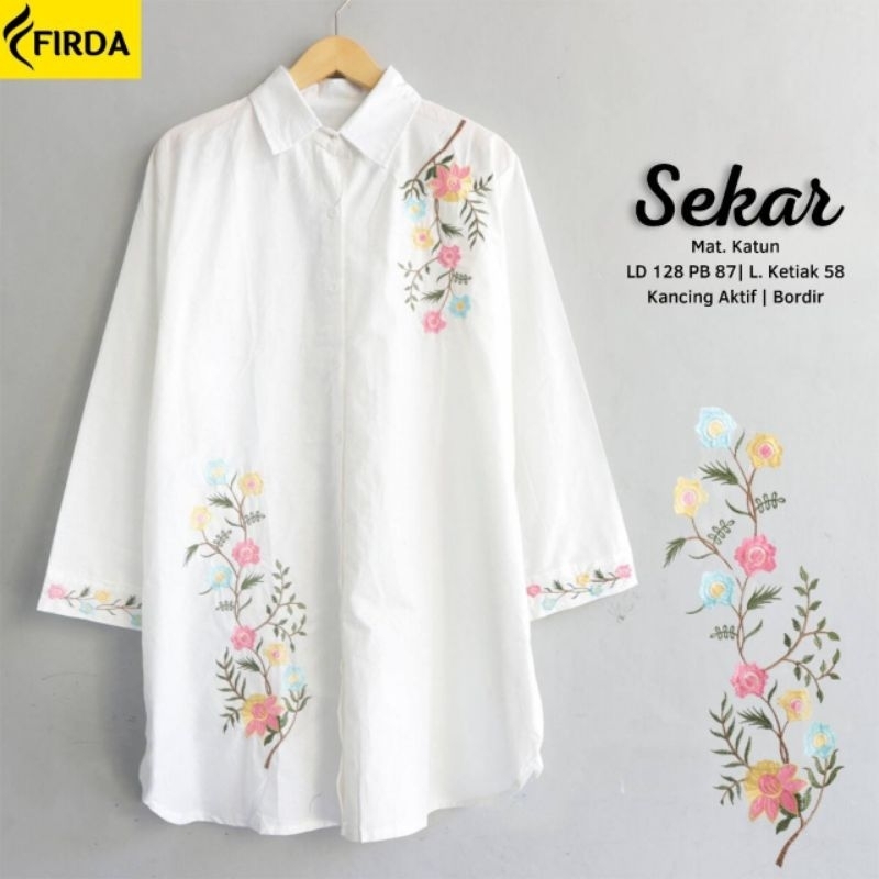 Kemeja Blouse katun wanita cantik Motif Bordir Bunga premium Atasan Putih halus lembut mewah Alysa