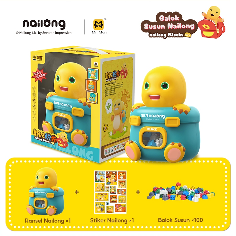 OHSOME Mr. Man Nailong Bulding Block School Bag Model 100 pcs / Balok Mainan Susun DIY Nailong Bentuk Tas 100 pcs / Blok Susun 100 pcs