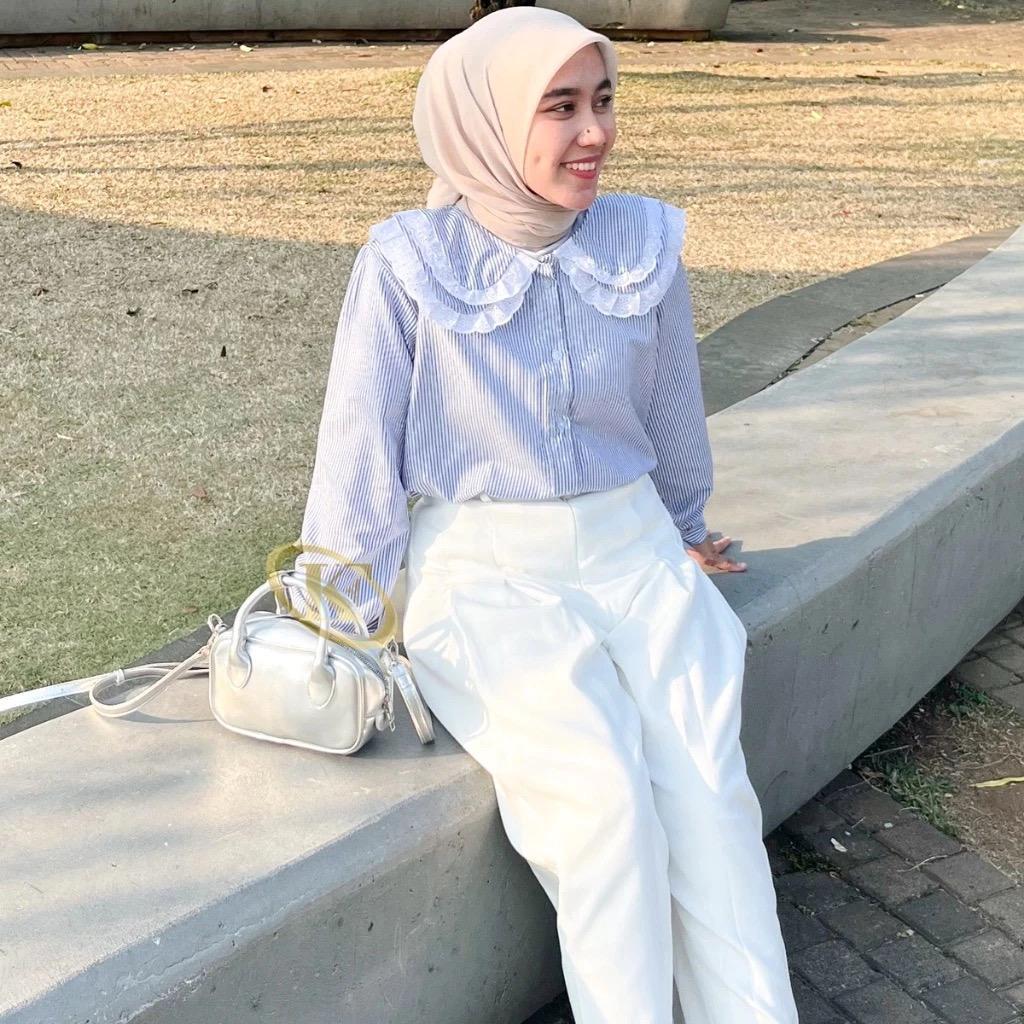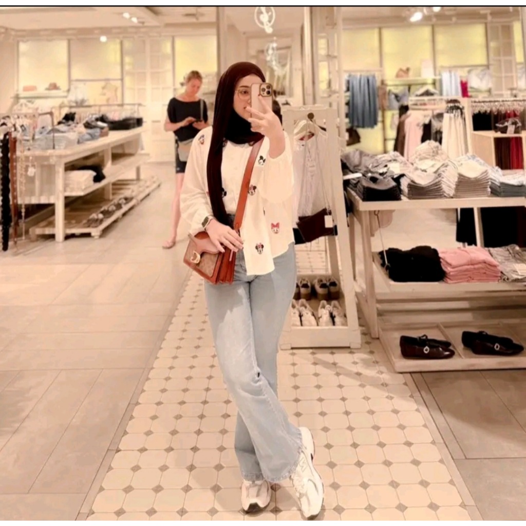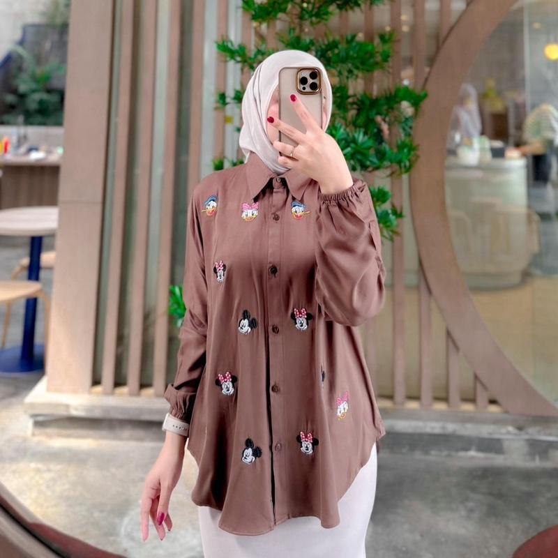 KEMEJA MICKEY ATASAN WANITA BORDIR LUCU RAYON TWILL KEMEJA KEKINIAN BORDIL LUCU