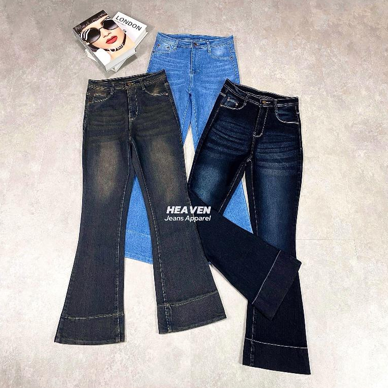 Highwaist Cutbray Jeans Kaki Lipat Lebar AUDREY - Celana Jeans Cutbray Strecht Wanita Kekinian 27-38