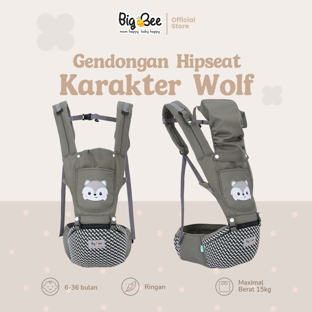 Big Bee Gendongan Hipseat Bayi Depan Karakter Wolf Series