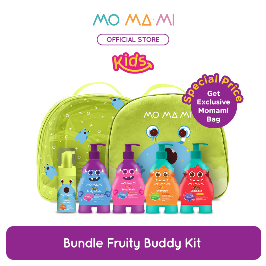 Momami Kids Bundle Tropical Splash Kit - Paket Sabun & Shampoo Wangi Buah Anak untuk Kulit Sensitif