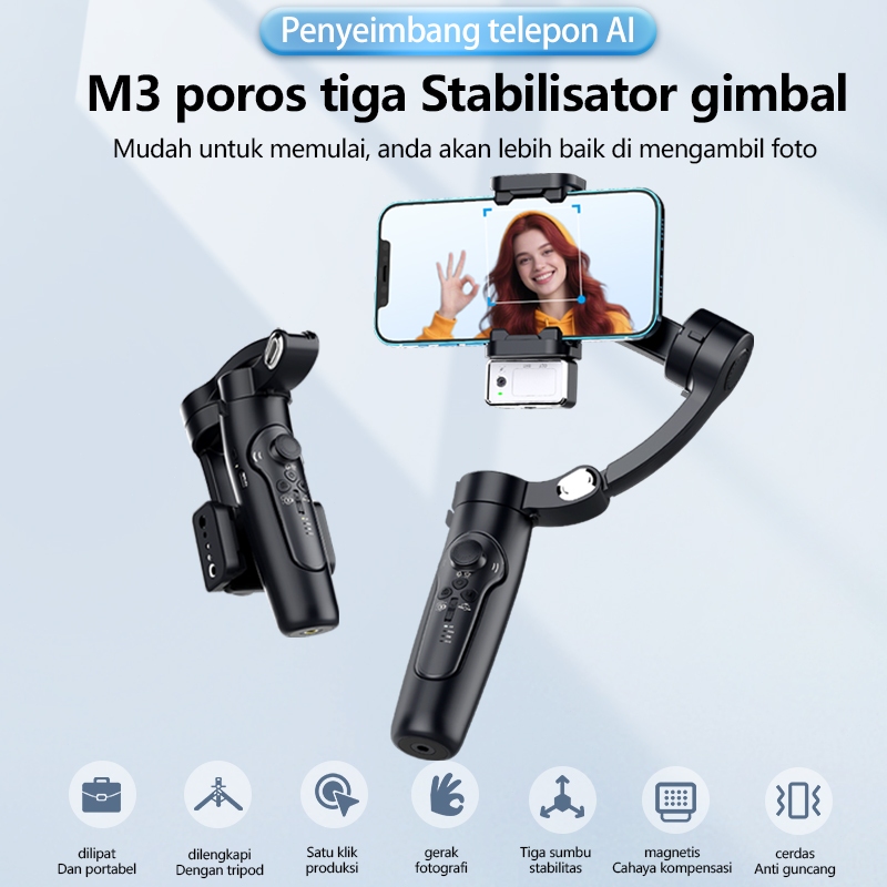 【NEW Modul AI】KF-M03 Gimbal Stabilizer 3 Axis hp Smartphone with Magnetic Modul AI LED Fill Light(3 Warna) Handheld Gimbal