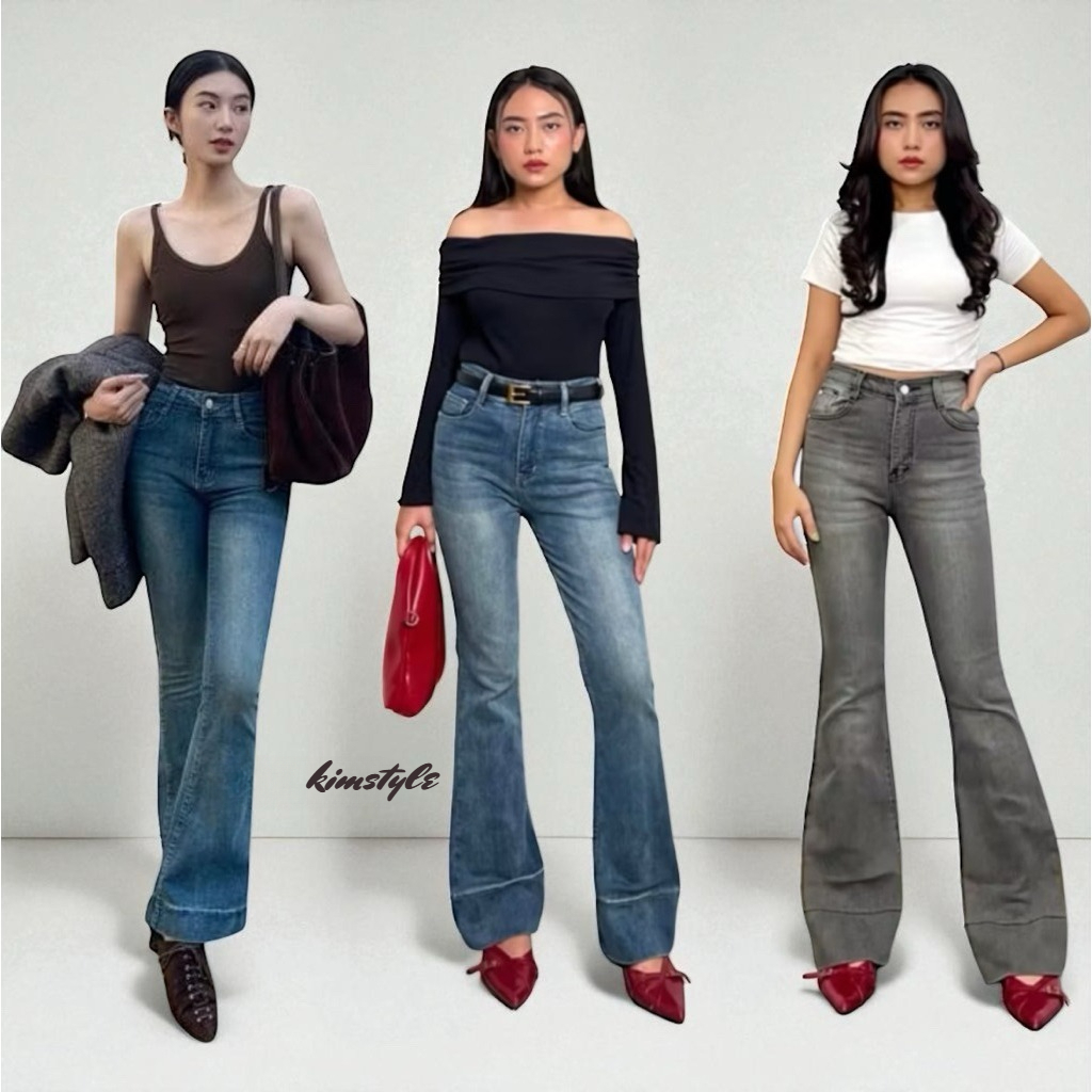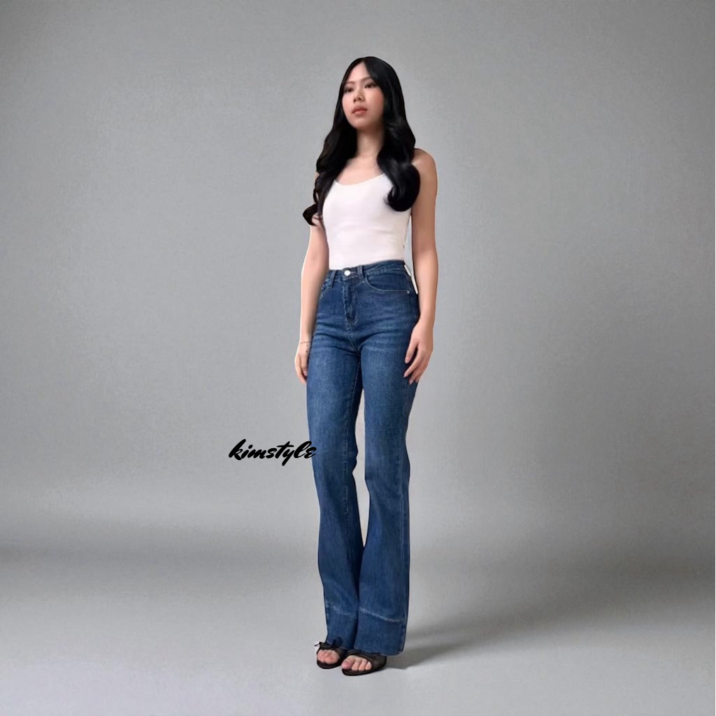 Jennie-HighWaist Cutbray Jeans Celana Fit & Flare Panjang Stretch Wanita Retro Vintage Lipat Bawah
