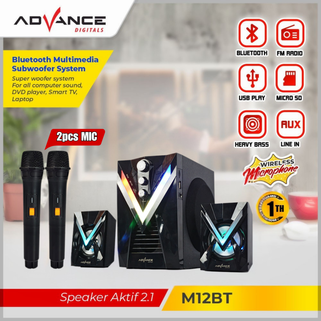 2Mic Advance Speaker Bluetooth Bass Speaker Portable Speaker Aktif Subwoofer 12BT