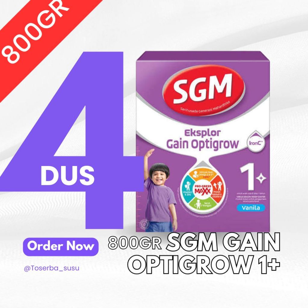 (4 DUS x 800gr) SGM Eksplor 1+ GAIN OPTIGROW 800gr (Kemasan Baru)