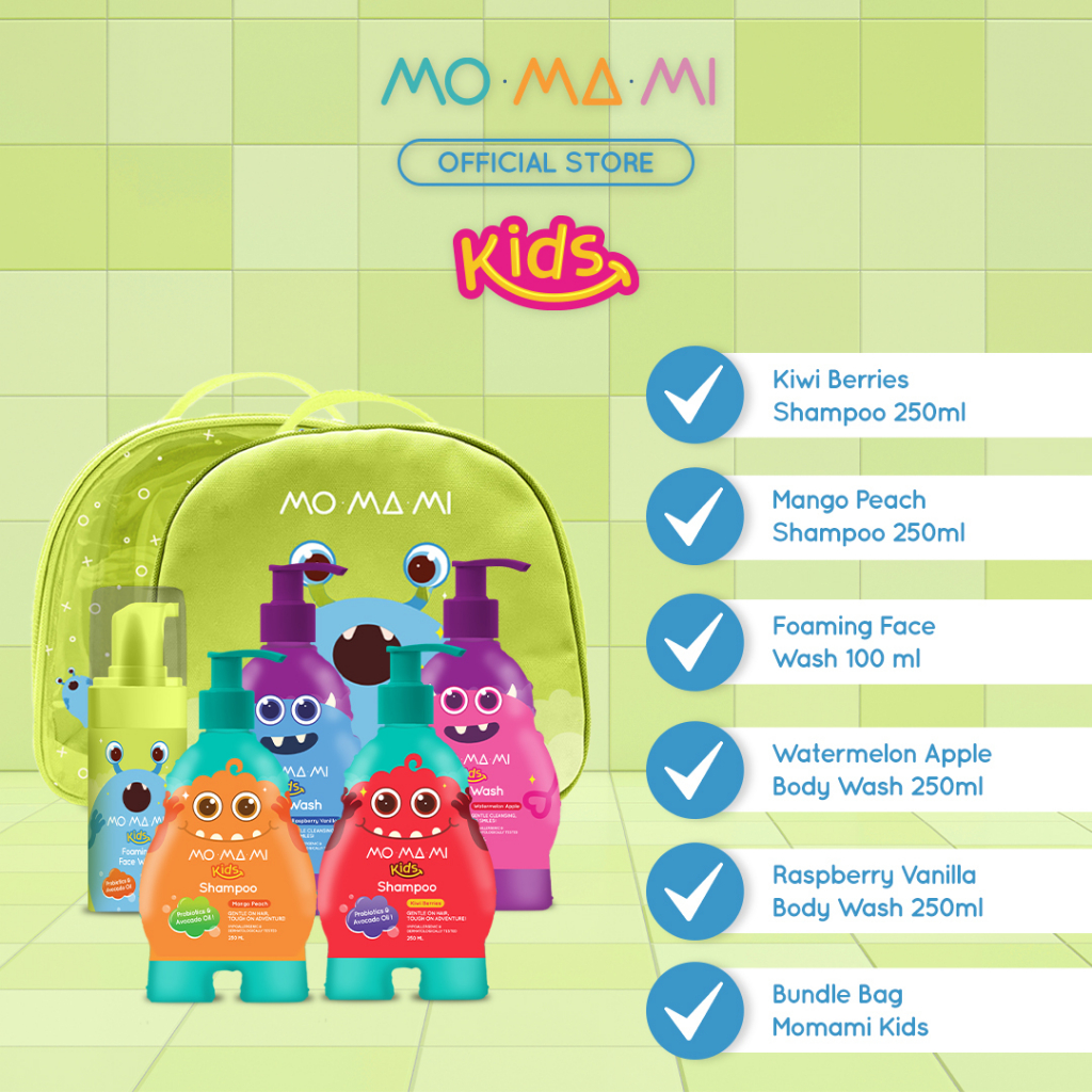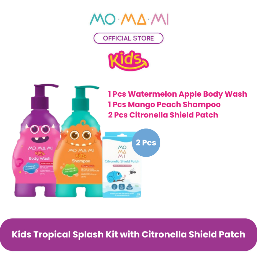 Momami Kids Bundle Tropical Splash Kit - Paket Sabun & Shampoo Wangi Buah Anak untuk Kulit Sensitif