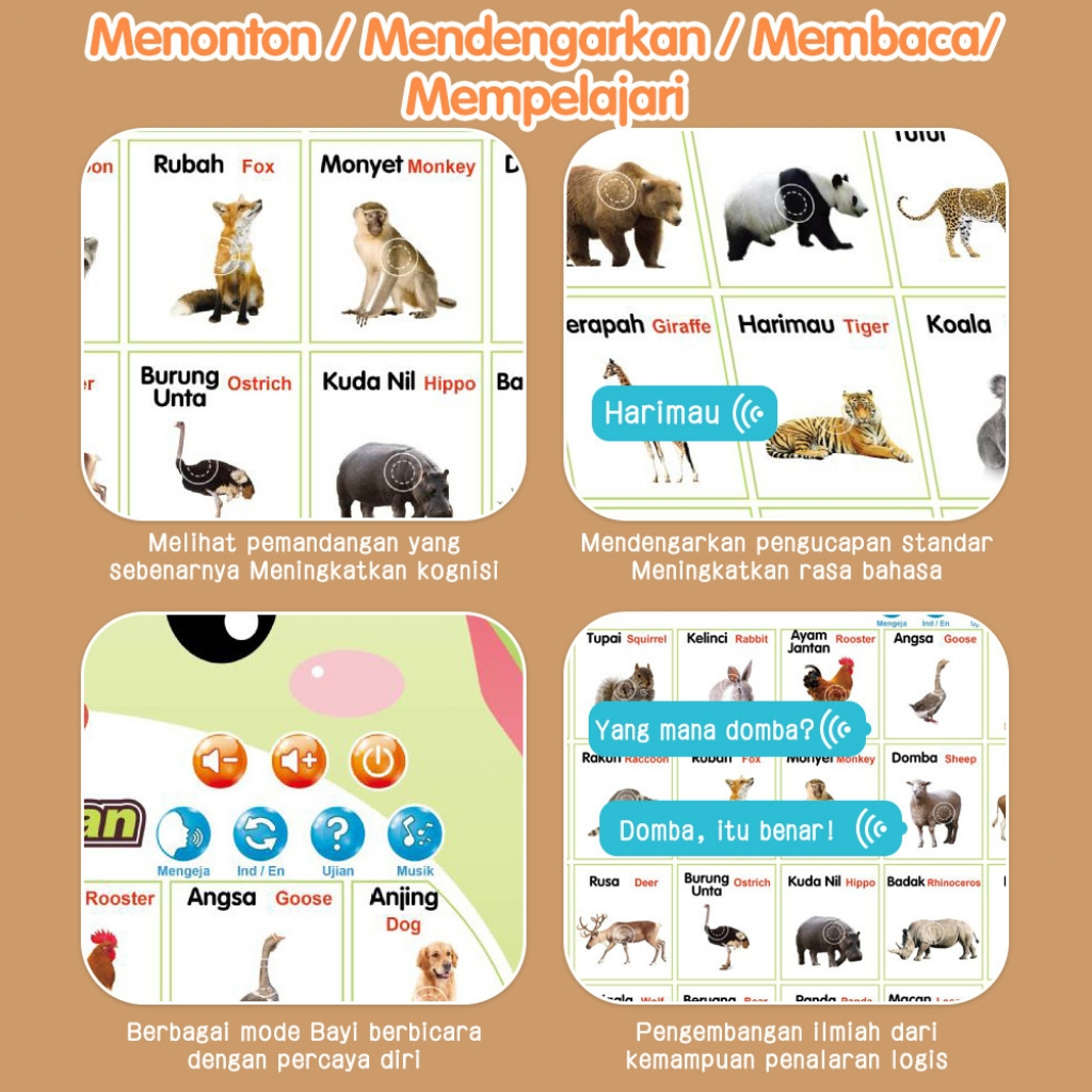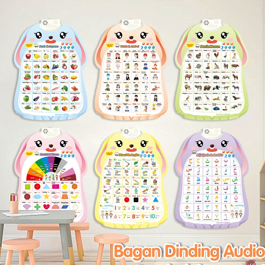 Poster Belajar Anak Bersuara 2 Bahasa Indonesia Inggris Dinding Edukasi Paud Tk