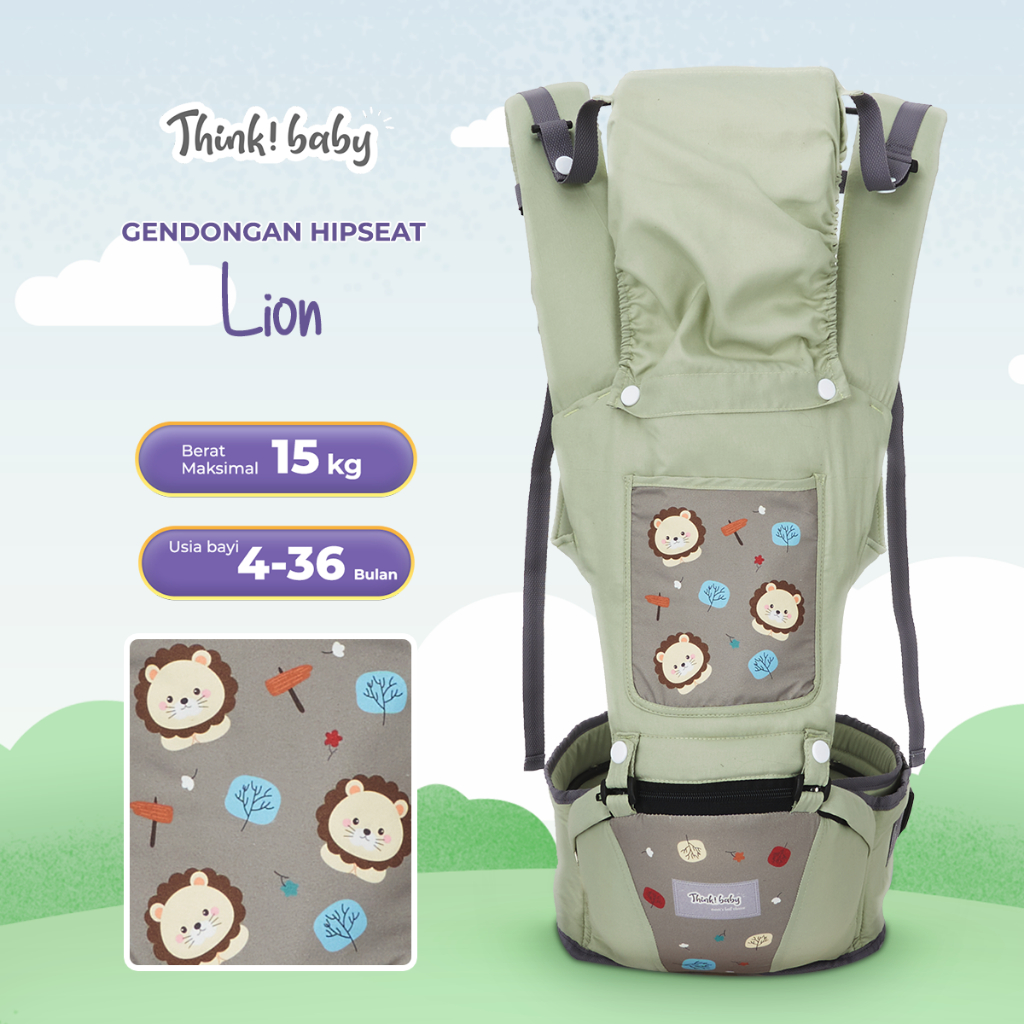 Think Baby Gendongan Bayi Hipseat Karakter Lion + Saku + Penutup Kepala