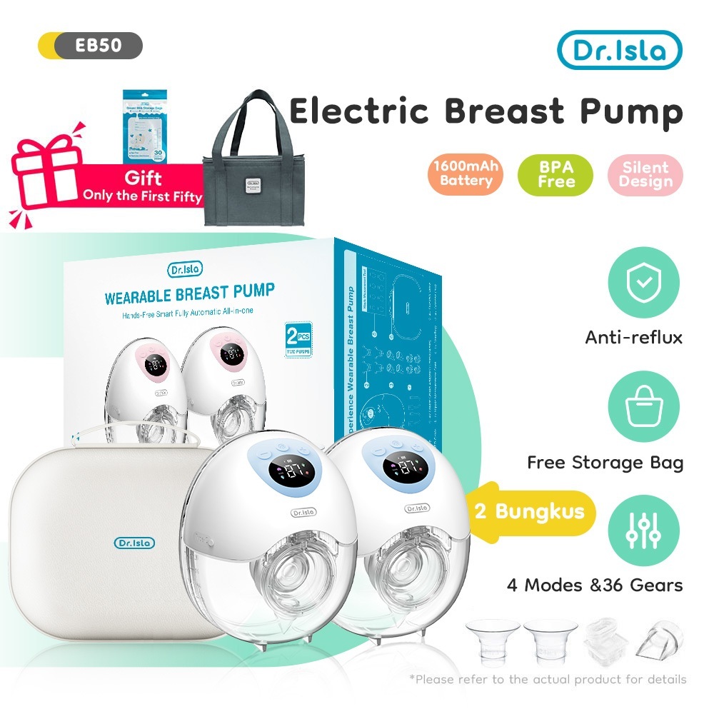 [set perjalanan] Dr.isla Pompa ASI Elektrik Hands-free Portable Wireless Breast Pump Supports Nipple Size 19mm - 27mm