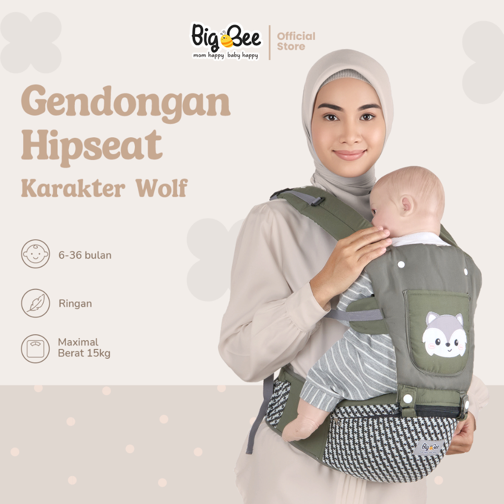Big Bee Gendongan Hipseat Bayi Depan Karakter Wolf Series