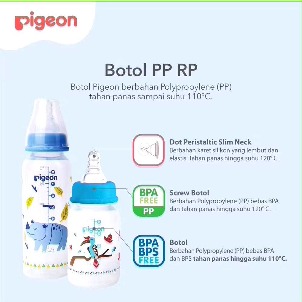 PIGEON Botol PP RP Flexible w/ S Type Silicone Nipple | Perlengkapan Dot Slim Neck Minum Susu Bayi