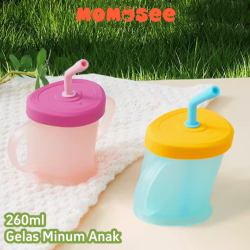 Momosee Gelas Minum Sedotan Anak Curve Straw Cup Gelas Susu Anak Anti Tumpah dan Pecah BB28