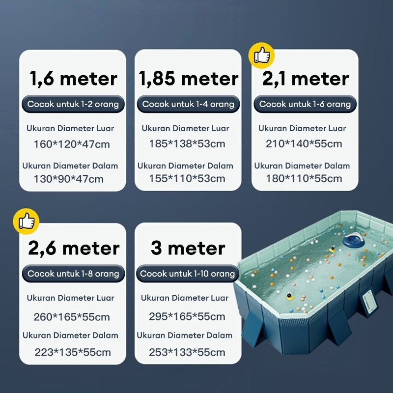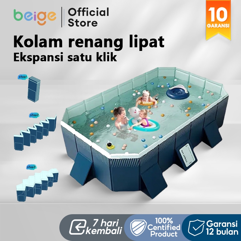 BEIGE Kolam Renang Anak Lipat Jumbo 3M Portabel Anti Bocor Bukan Tiup Cocok 1-10 Anak Bayi & Balita