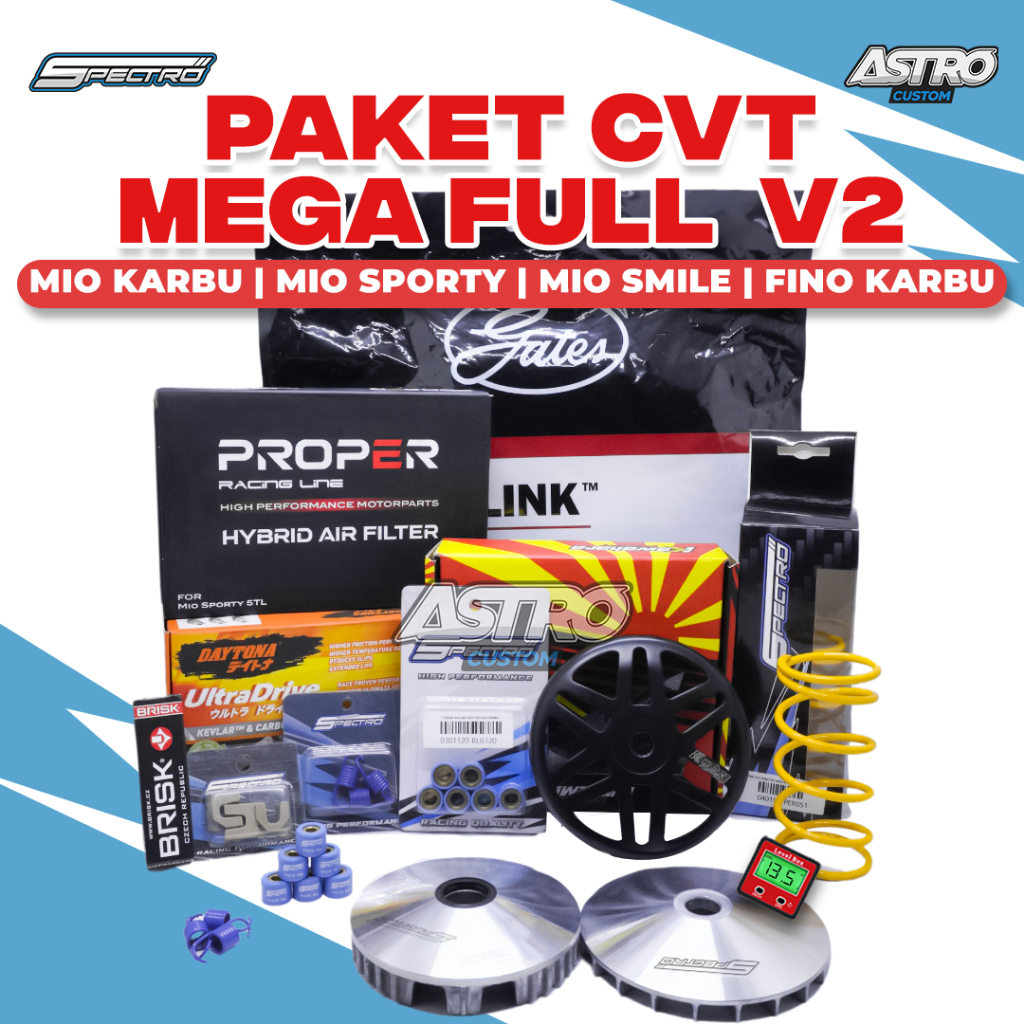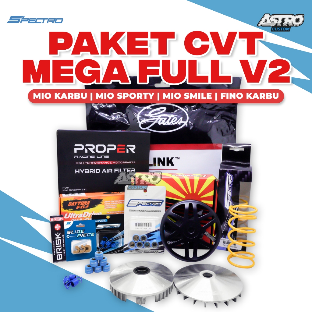 Mega Super Full Upgrade CVT V2 Mio Smile Sporty Fino Soul Karbu Mangkok Ganda Kawahara Filter Udara