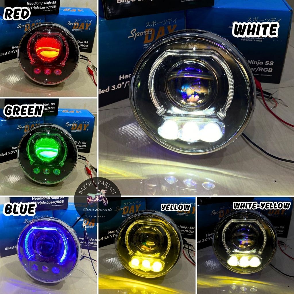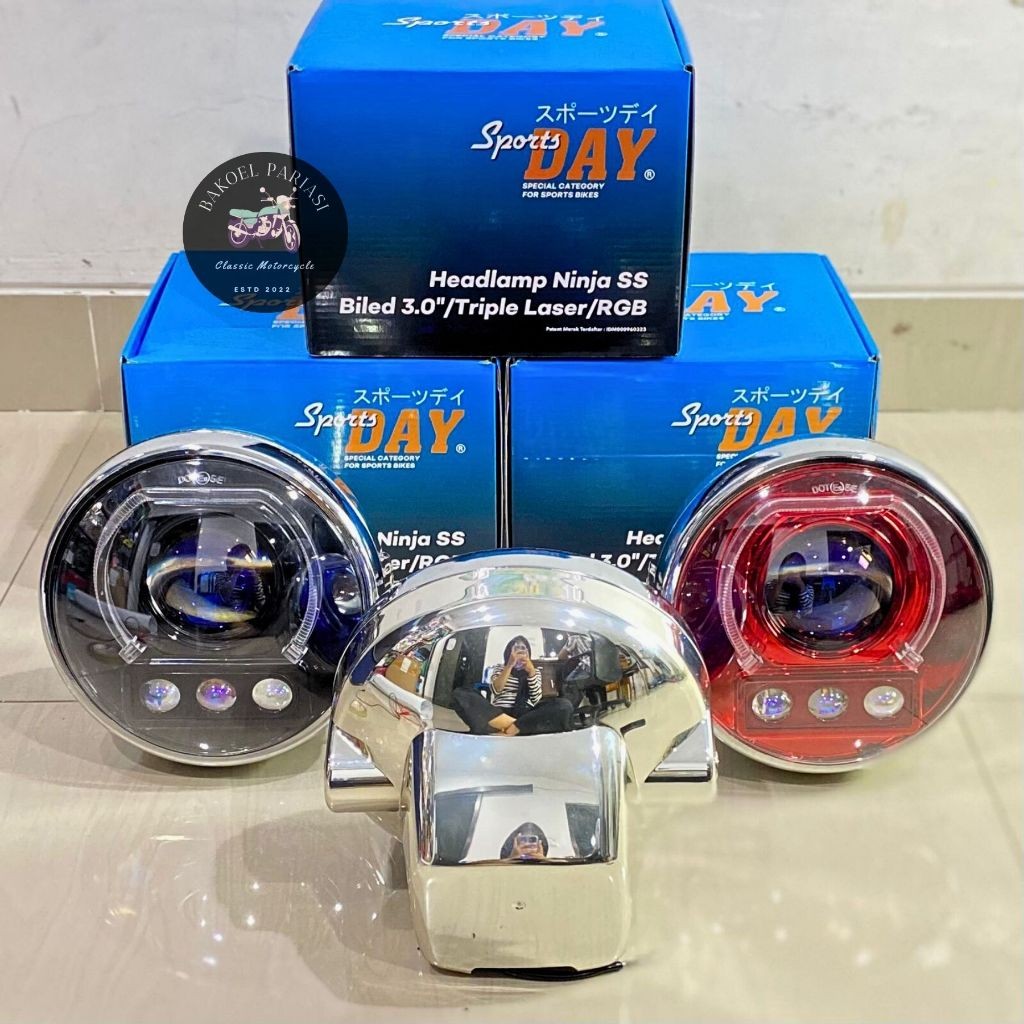 HEADLAMP NINJA SS BILED RGB 3'0 TRIPLE LASER LAMPU DEPAN NINJA R SET BATOK NINJA IMPORT SPORTSDAY