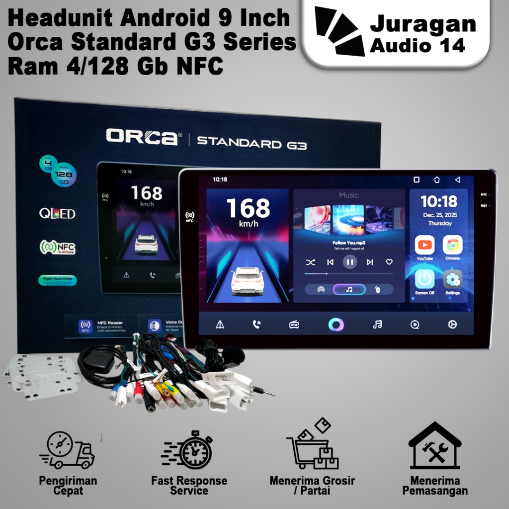 Headunit Android Orca Standard Series G3 QLED NFC 9&10 Inch ADR 9988 Ram 4/128
