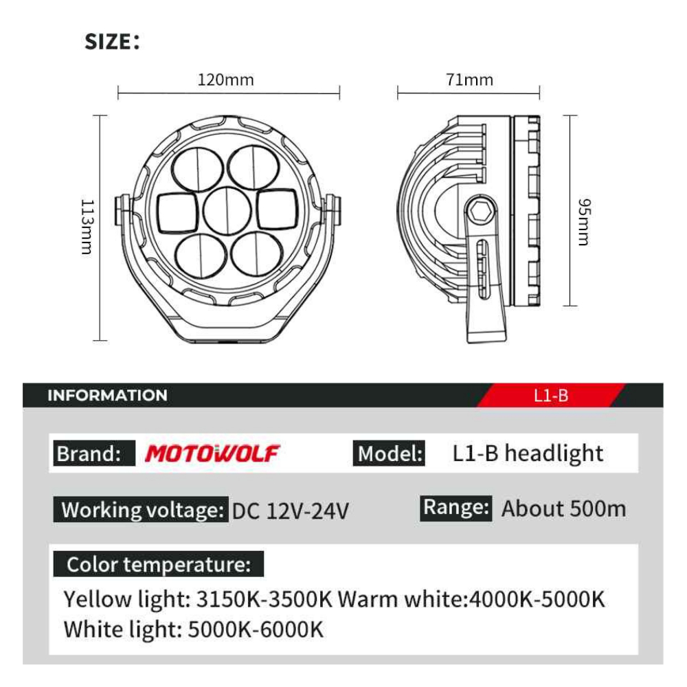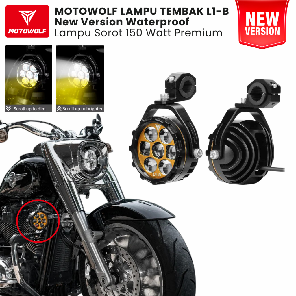 Lampu Tembak Motor LED 2 Warna Motowolf L1-B Lampu Sorot 150W Putih Kuning Waterproof