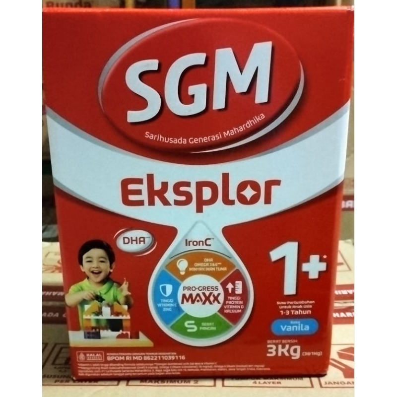 SGM Eksplor 1+ dan 3+ dengan ironc susu. pertumbuhan rasa Vanila 3000 gr