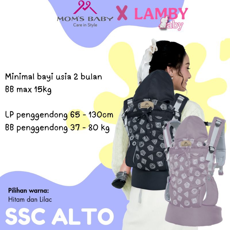 Gendongan Bayi SSC M-Shape Ergonomis Tanpa Dudukan | Moms Baby Alto Series | Baby Carrier 2-24 Bulan Hadap Depan & Belakang Max 15kg