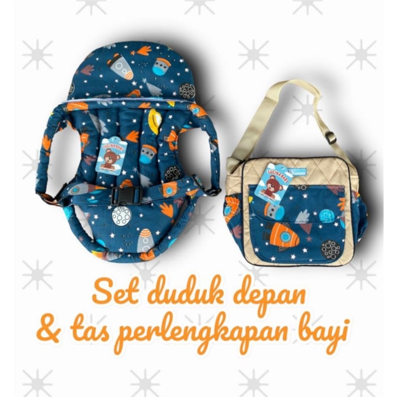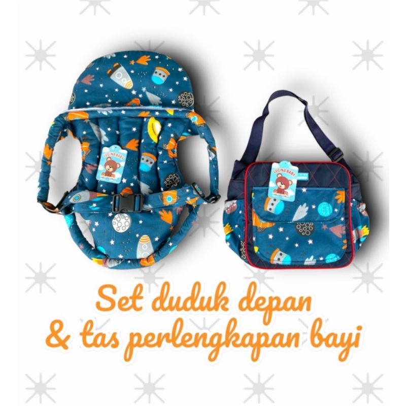 Set Gendongan Bayi Duduk Depan dan Tas Slempang Medium