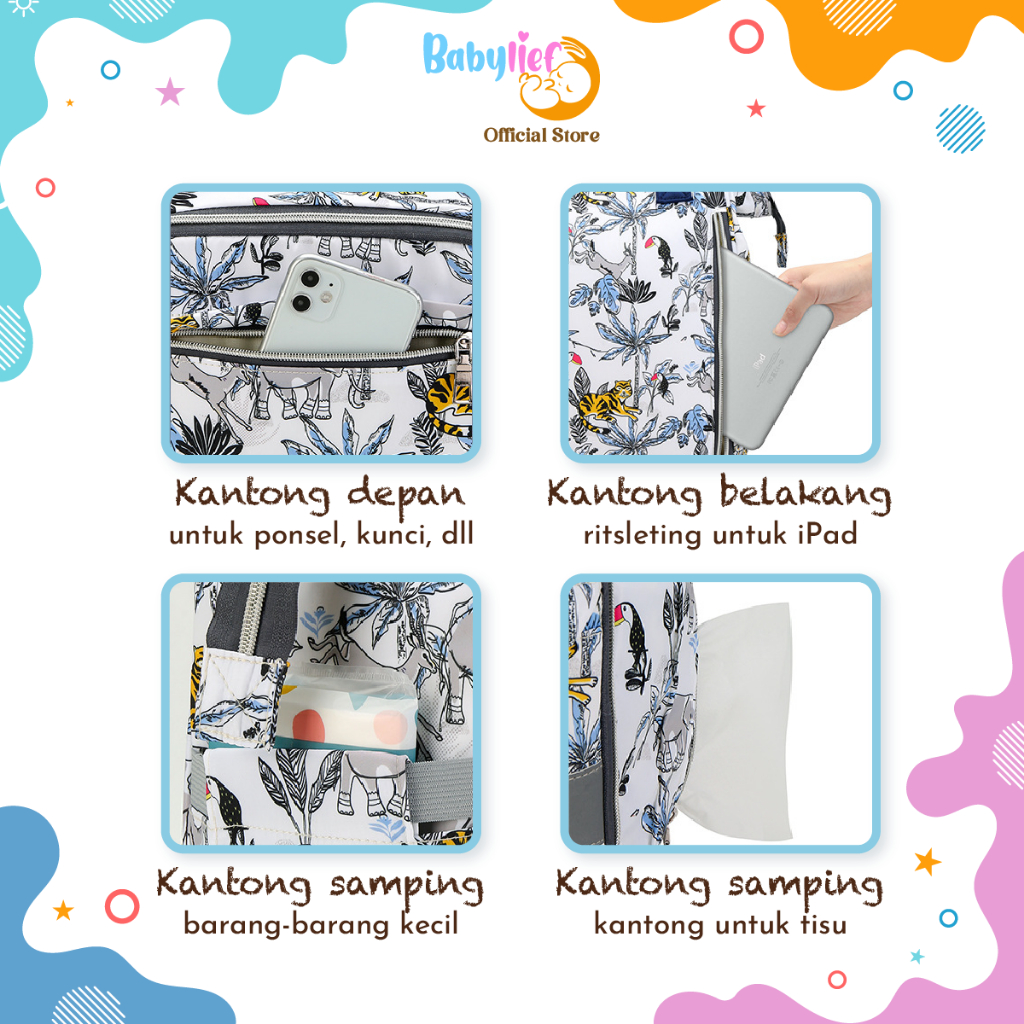 Babylief Mommy Bag Ransel Bayi – Anti Air, Tahan Cuaca, Muat Banyak & Nyaman Dipakai Jalan BL048