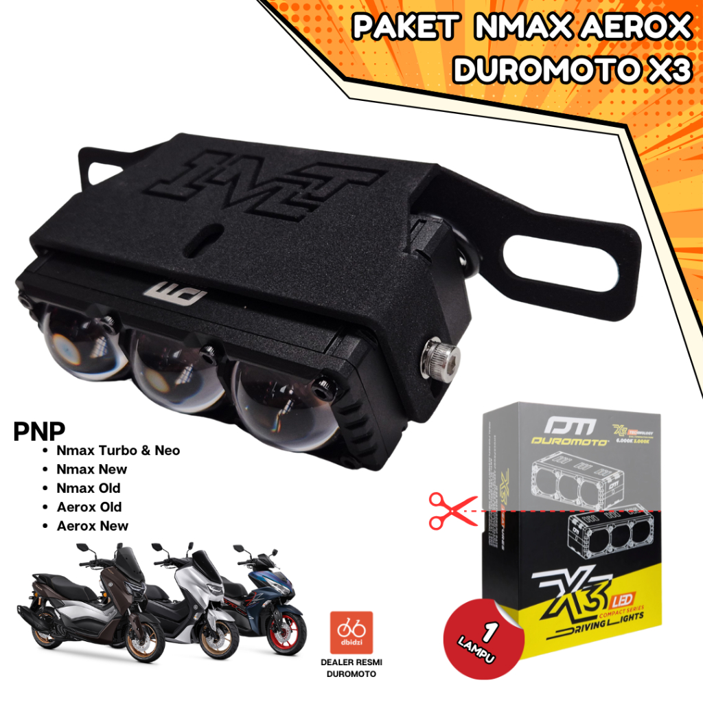Duromoto X3 Paket PNP untuk Nmax Old New Turbo Neo Aerox Old New 75 Watt Tinggal Pasang