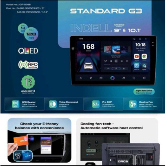 Headunit android ORCA G3 4/128GB NFC COOLING FAN