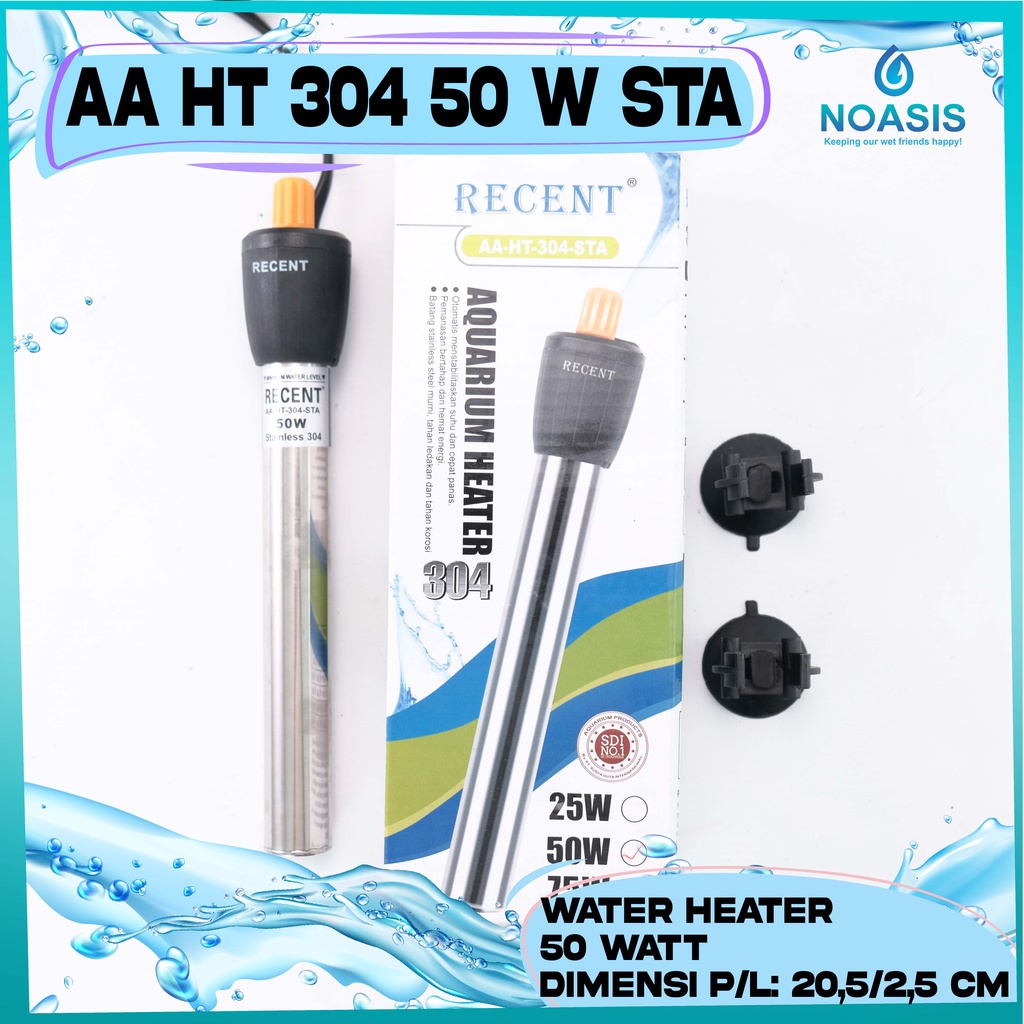 HEATER AQUARIUM RECENT AA-HT-304 STAINLESS 50 WATT PENGHANGAT AIR