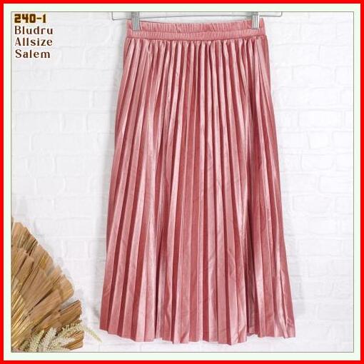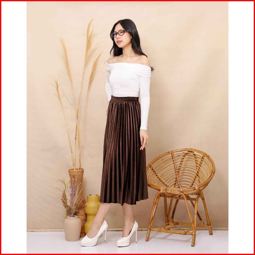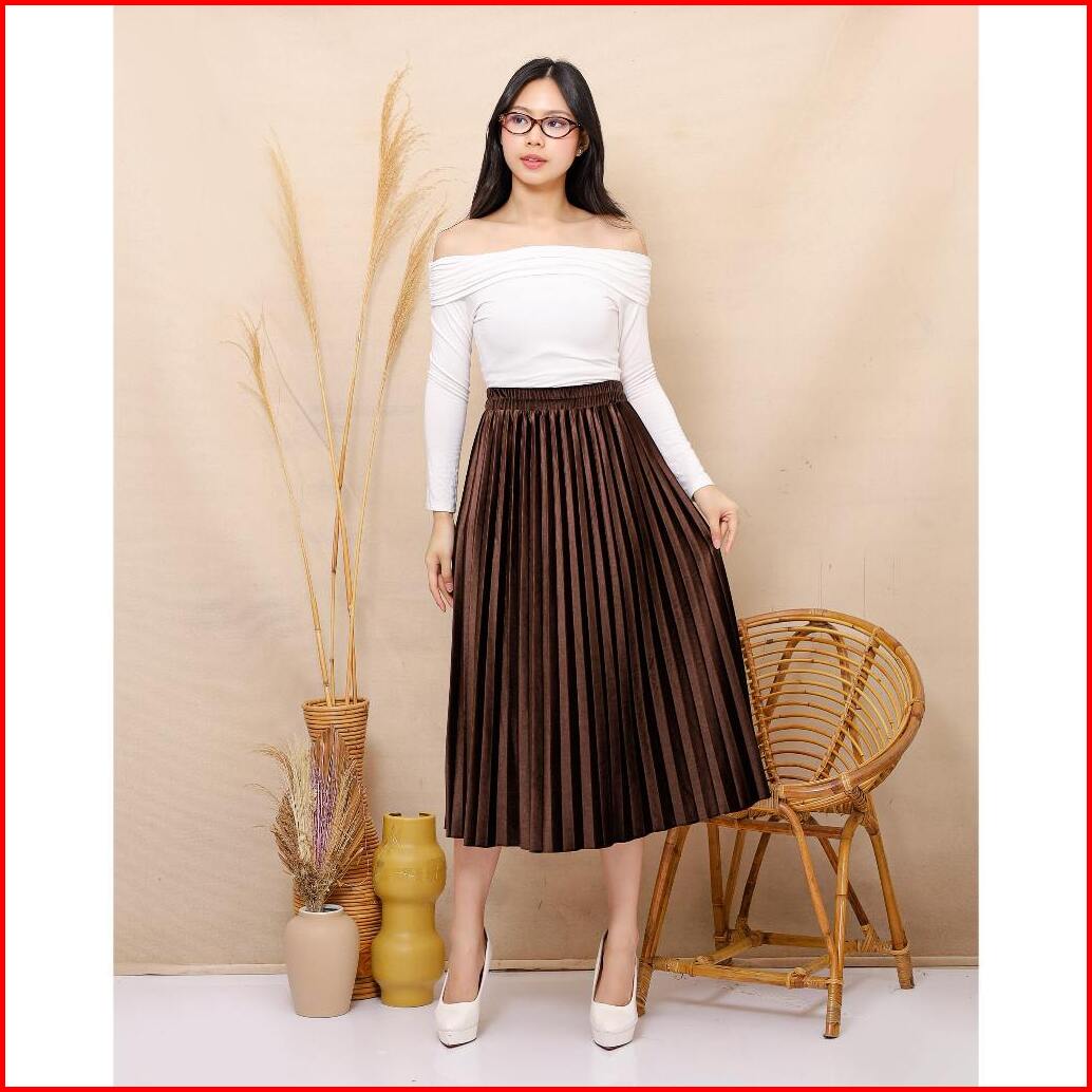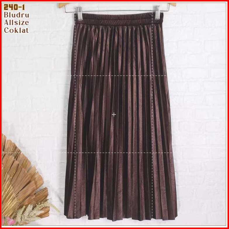 Rok Plisket Velvet Bludru - Rok Pendek 70 Cm Premium Shiny Midi Skirt 240-1