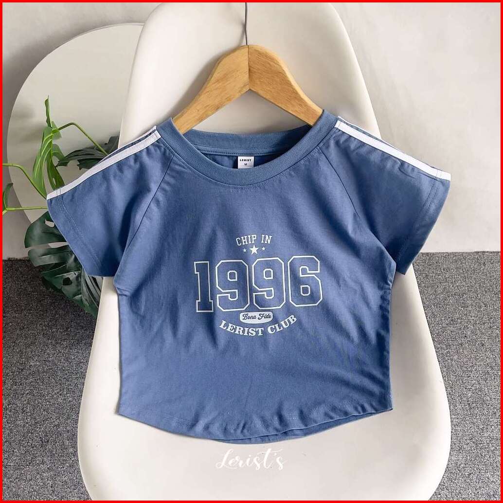 Crop Chip In 1996 Lerist Club Women - Tshirt Crop Round Neck Top Tee Kaos Atasan Wanita Cotton Combed 30s Premium T-shir