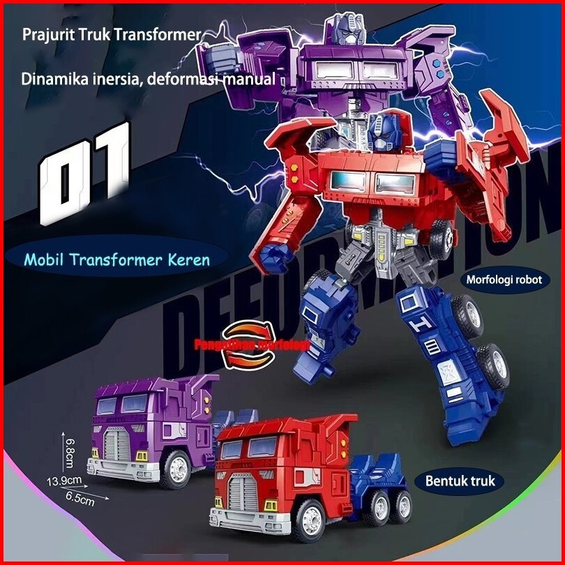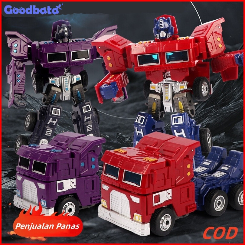 Goodbata18cm Mainan Transformer Robot Geser Mainan Mobil Model Transformer Mobil Optimus Prime Truk Perang Inersia Autob