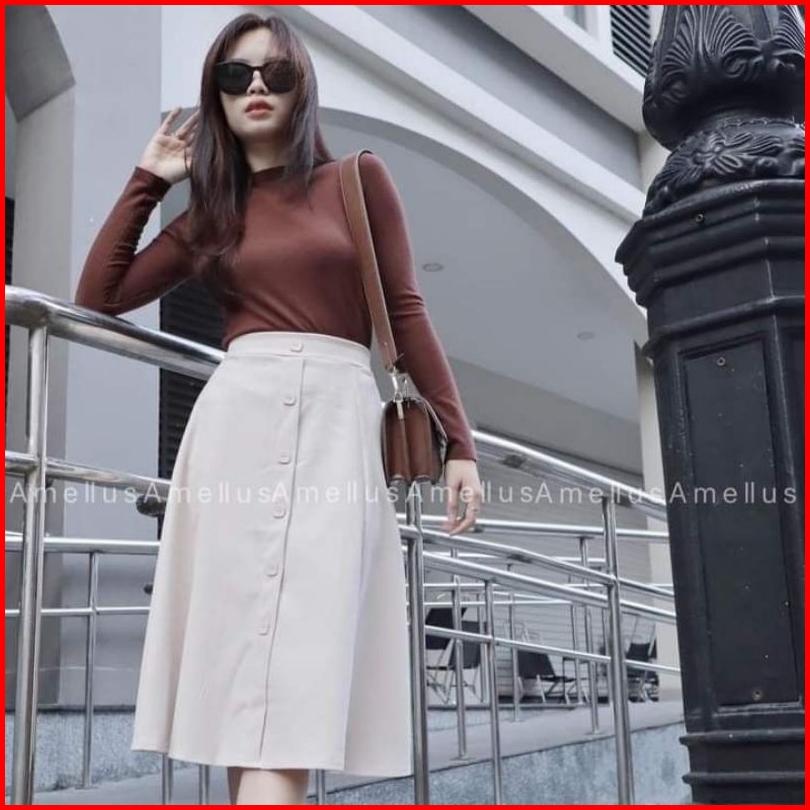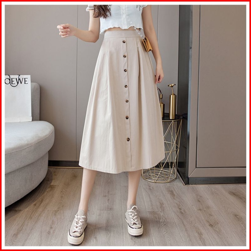 Rok Midi Skirt Korean Style Model 7 8 Bahan Katun Twill Combed Premium