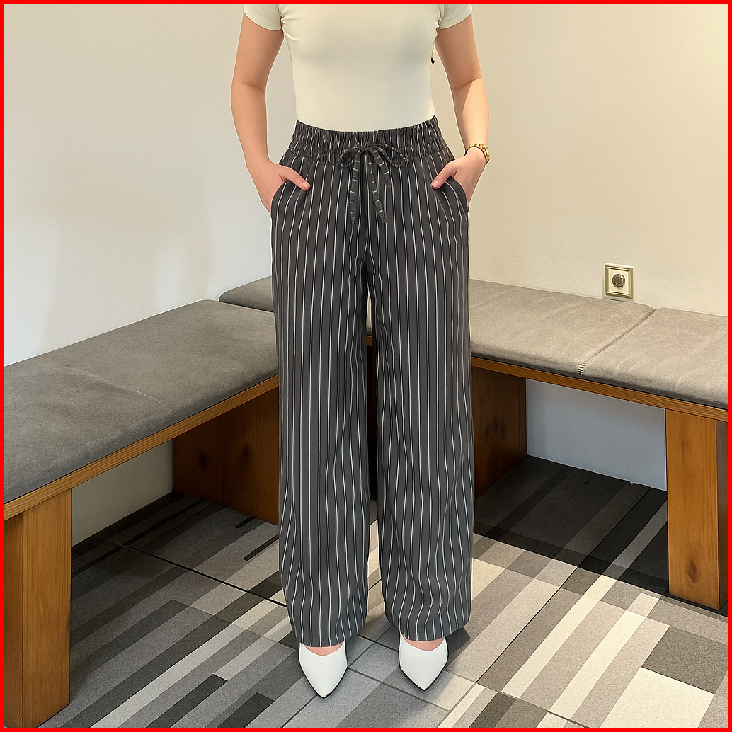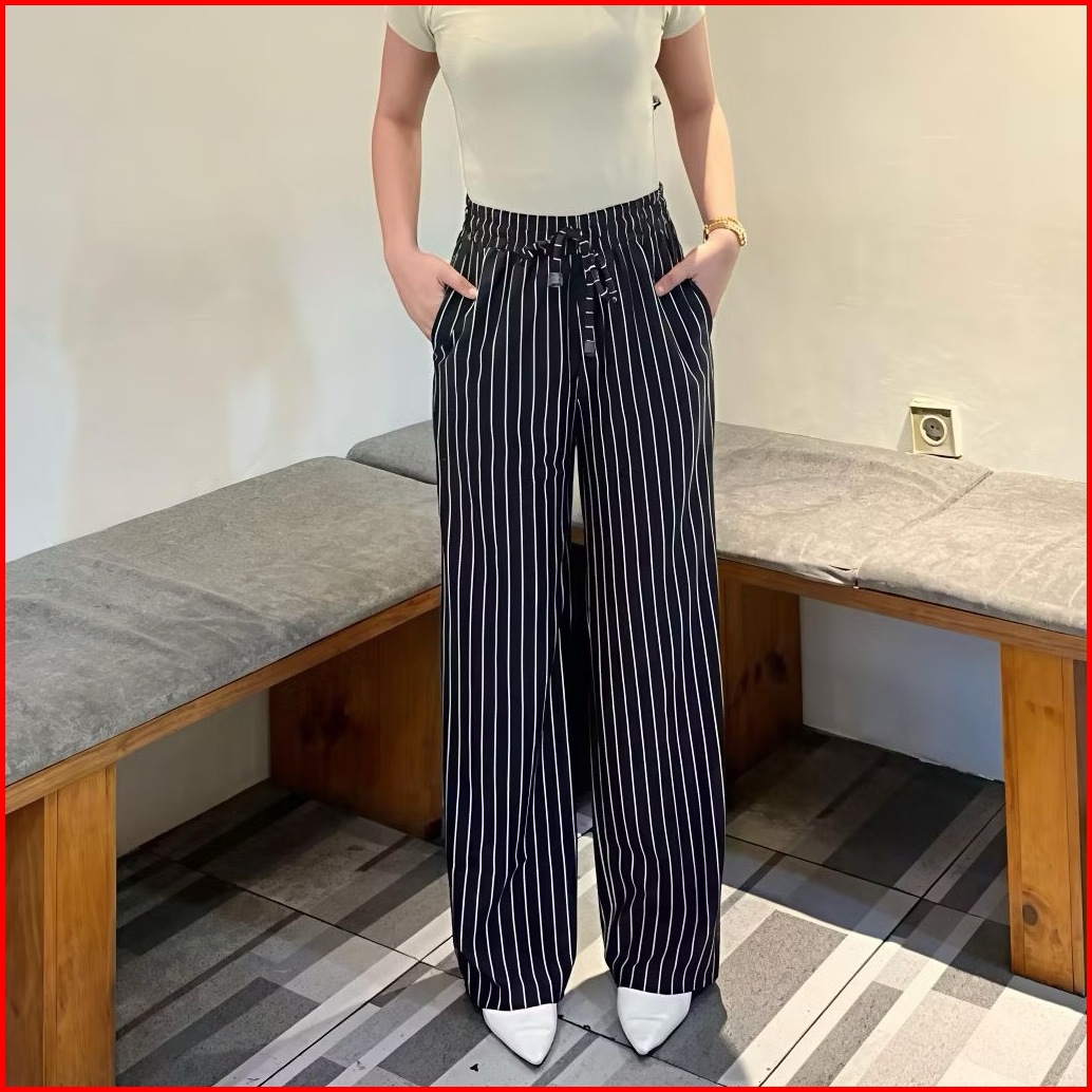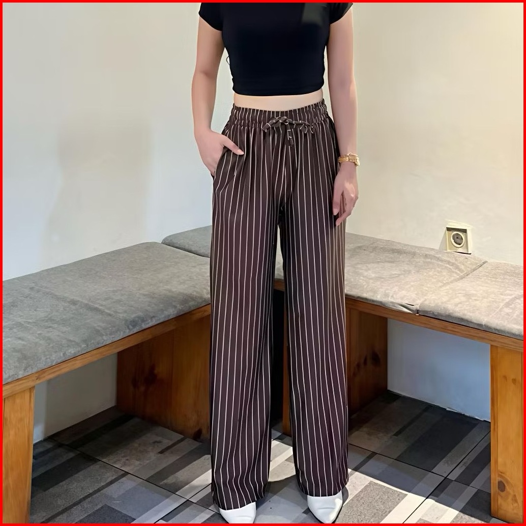 Everyday Pants - Stripe Pants Bangkok Celana Panjang Wanita Baggy Kantor Kuliah Motif Garis Kulot Pinstripe - Celana For