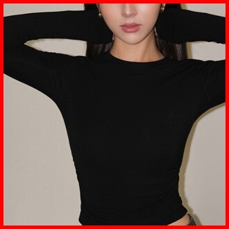 99koutlet Women Slim Fit Crop Top Long Sleeve Crew Neck 3348 S M L Xl