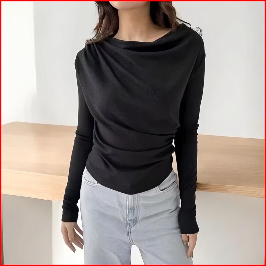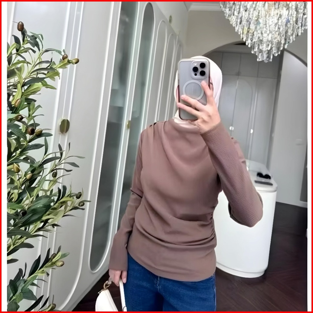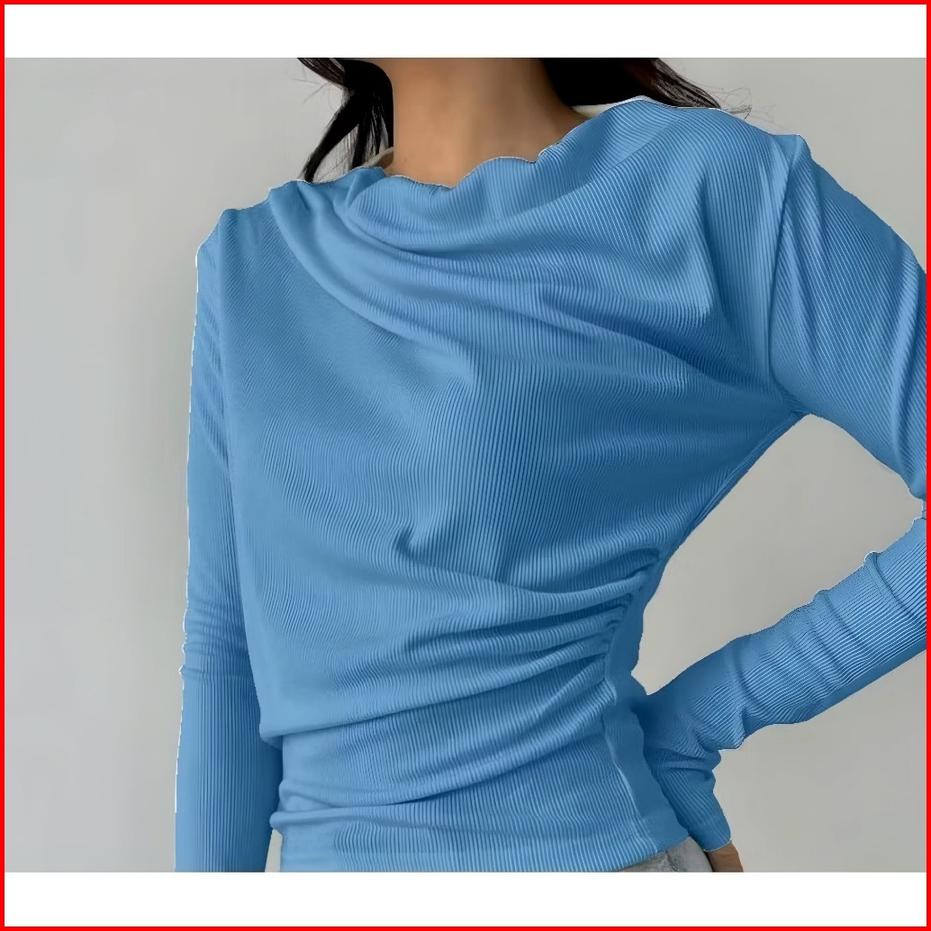 Inu Shop April Top Knit Rib Atasan Lengan Panjang Pakaian Wanita Terbaru