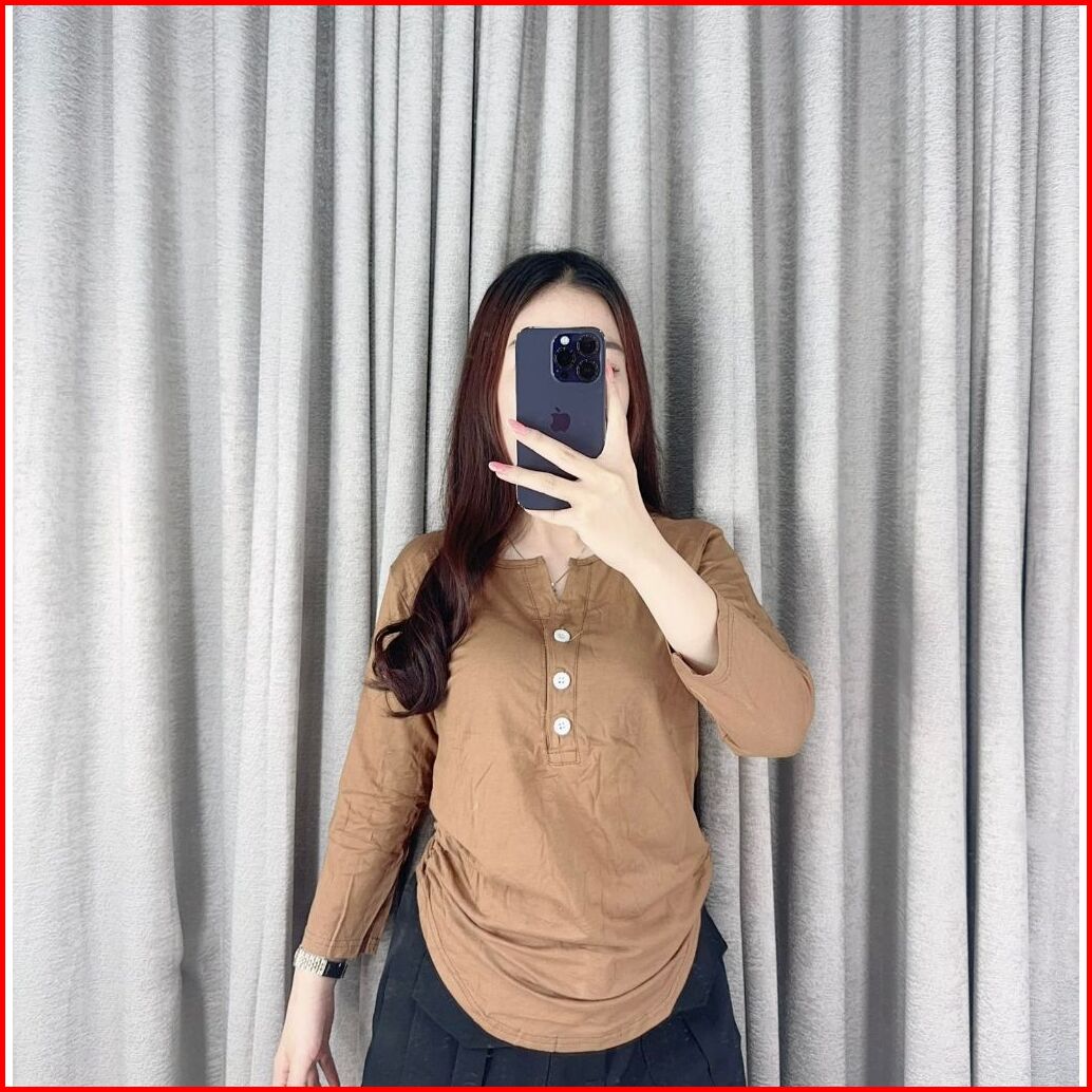Freya Button Top Atasan Lengan 7 8 Atasan Wanita Terbaru