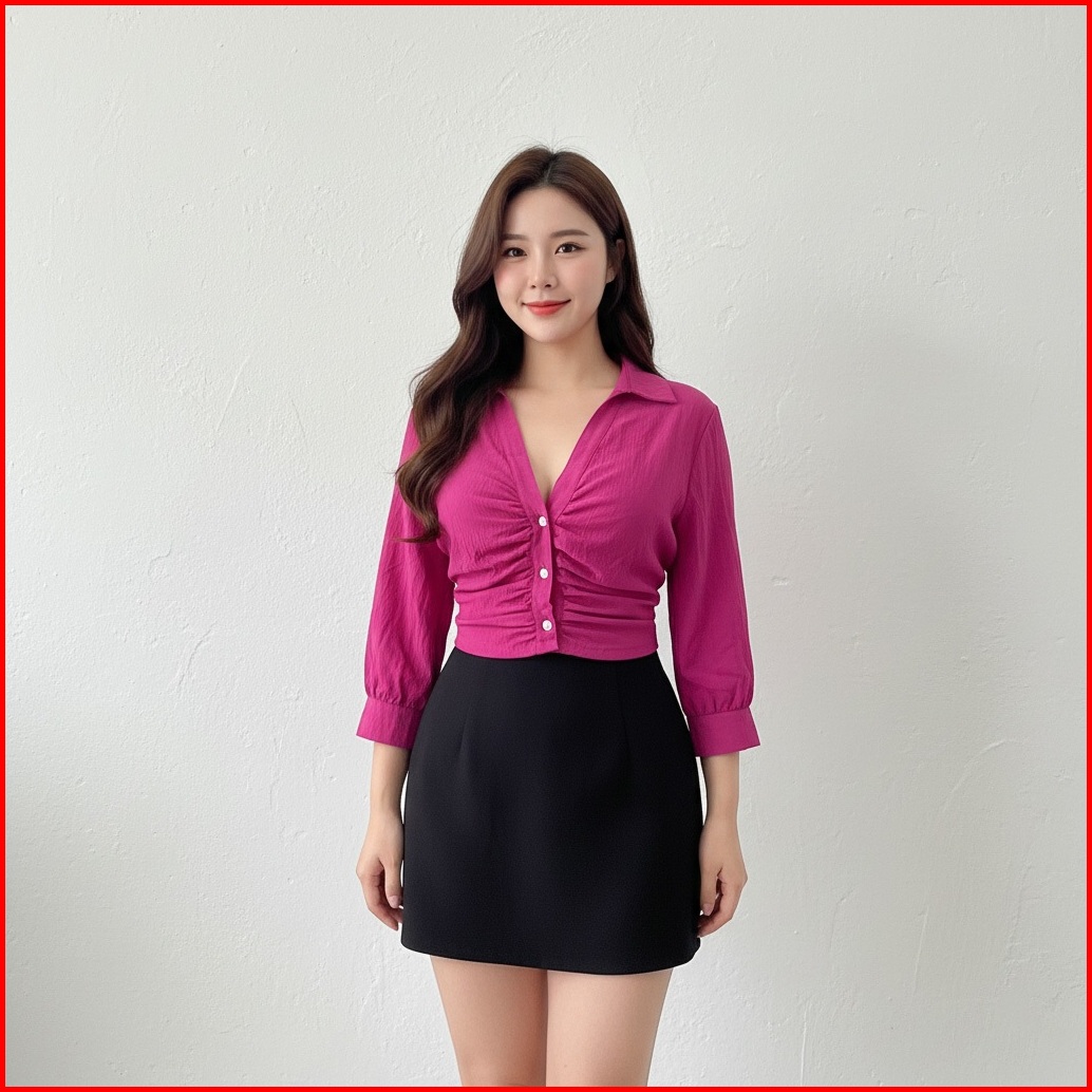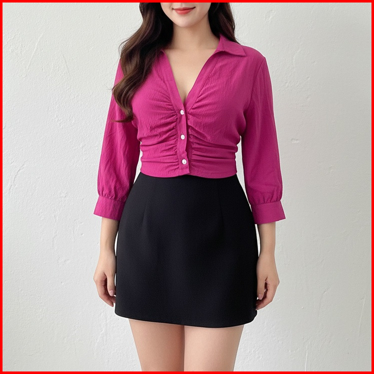 Kemeja Serut Yuki Crop Top Press Body Katun Cringkle