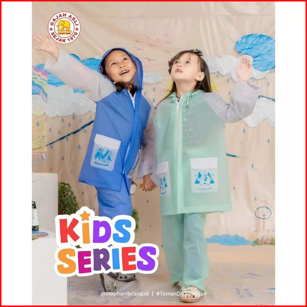 Jas Hujan Anak 4-10 Tahun Kidz Series Setelan Celana Elephant Brand 1pcs
