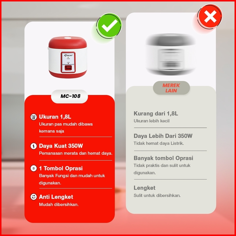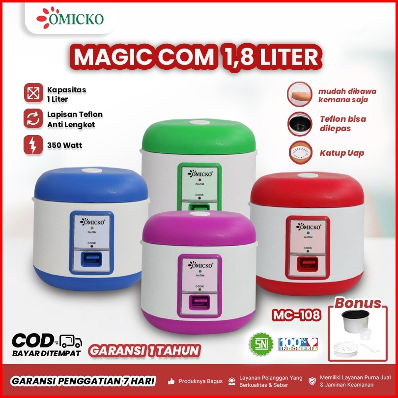 Omicko Rice Cooker 1.8 Liter 3in1 Penanak Nasi Pengukus Makanan Penghangat Makanan
